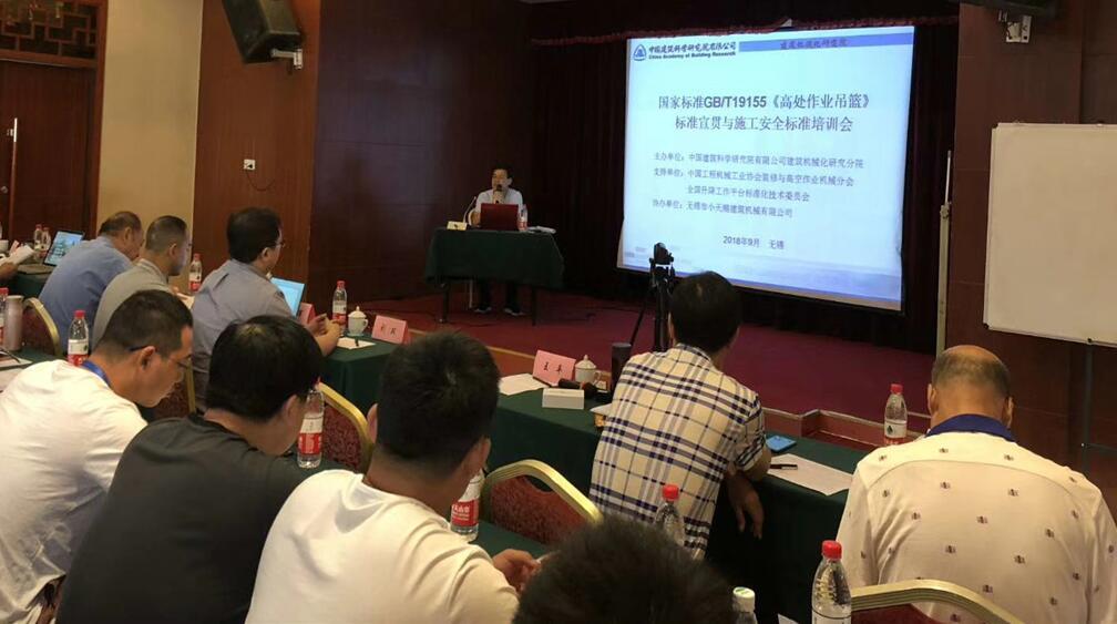 由GB/T19155-2017標準主編單位中國建筑科學研究院有限公司建筑機械化研究分院舉辦的第一期GB/T19155-2017《高處作業吊籃》標準宣貫學習與施工安全標準培訓會于2018年9月9日在江蘇無錫大飯店圓滿結束,來自全國100多家單位的人員參加了學習。